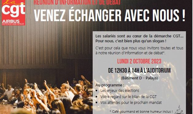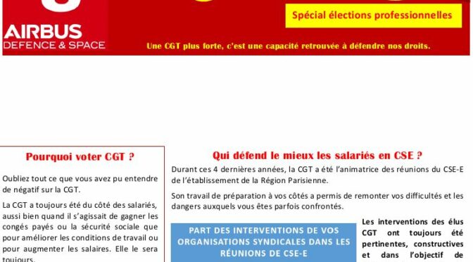 Retrouvez ici le tract sur les enjeux des elections pros à AIRBUS DS distribué aux selfs de l’entreprise à Toulouse et Elancourt le 19 septembre 2023 2023_09_19_Toulouse_EnjeuxElectionsProfessionnelles_Intranet