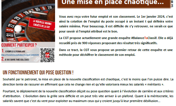 Retrouvez ici le tract CGT distribué au self du Metapôle le 18 avril 2023 concernant la nouvelle classification et les salaires 2023_04_18_Elancourt_ResultatBalanceTonSalaire_vFinal