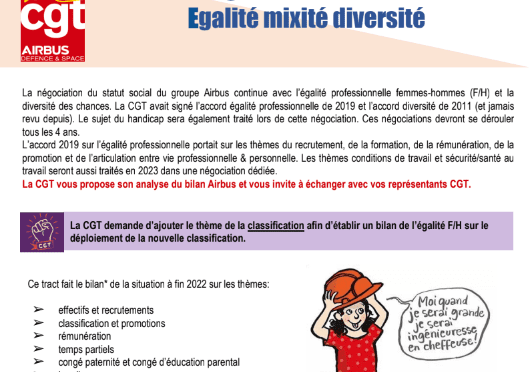 Les négociations RELOAD continuent dans le groupe AIRBUS avec une négociation importante : celle qui concerne l’égalité professionnelle entre les femmes et les hommes dans l’entreprise. Retrouvez ici le