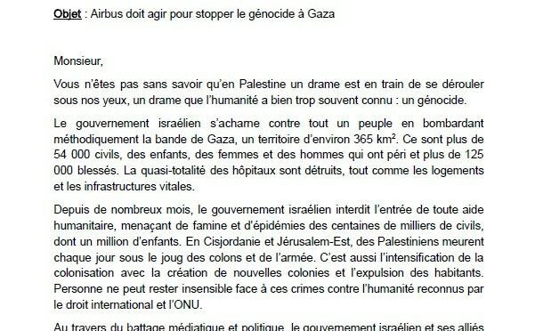 CGT Airbus : Lettre à Faury sur la situation en Palestine